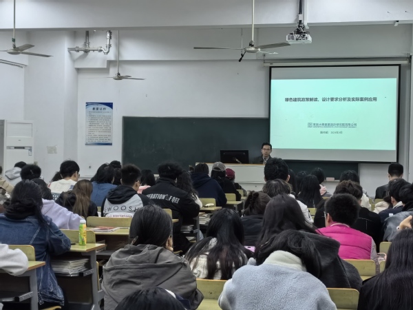 讲座现场设置了提问环节,同学们积极参与交流互动,殷院长针对大家提出的问题逐个解答。本次专题讲座使同学们对我国绿色建筑设计涉及的政策、规范要求及方法等有了深刻的认识和了解,为将来从事建筑及相关行业打下坚实基础。