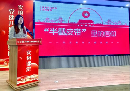 随后,海角社区 党总支青年委员潘天娇以“半截皮带的信仰”为主题,生动讲述了长征途中红31军93师274团“半截皮带”的故事,红军战士们宁肯忍饥挨饿,也要将半截皮带留下来,带着它去延安见毛主席。现场观众反响热烈,深刻体会到革命理想高于天、铁心跟党走的坚定信仰。
