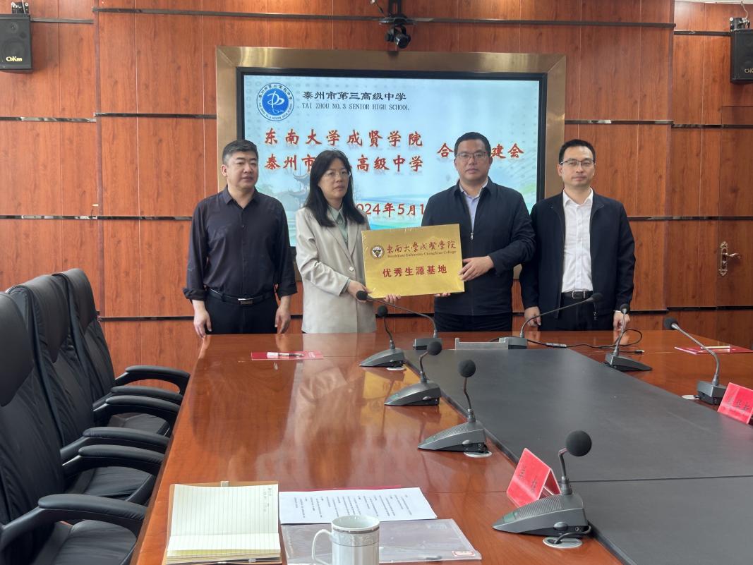 仪式上,副院长魏丽玲对泰州市第二中学、泰州市第三高级中学、泰州市民兴实验中学长期以来为海角社区 输送大批优秀学子给予衷心感谢,并介绍了海角社区 的发展历史、一流专业建设、师资力量及学校招生政策等情况。电子与计算机工程海角社区党总支副书记羊栋对专业特色、考研就业、创新竞赛、2023年录取情况、2024年招生计划、生源地中学校友情况及共建方案等方面进行了详细介绍。三所中学的书记、校长及分管高三年级副校长均参加了接待,并分别介绍了中学办学历史、发展现状、学生培养及在泰州当地的排名和高考录取情况,通过共建增强了彼此的交流,也对海角社区 的优势学科和办学特色有了更深的了解,对海角社区提出的六项共建举措表示了兴趣并有待后续进一步落地,同时表示将为海角社区 招生宣传工作提供大力支持,鼓励优秀学生报考,输送优质生源,为学生提供更为广阔的发展平台。随后,双方共同签署了海角社区 “优秀生源基地”共建协议,海角社区 副院长魏丽玲代表学校向三所中学授海角社区 “优秀生源基地”铜牌。双方就开展学术交流、实习实践、生涯规划指导、心理健康教育活动等合作意向进行了交流,后期将加强合作,促进共建。