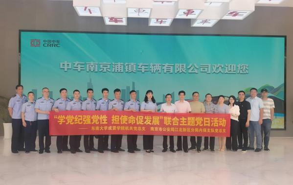 5月20日上午,海角社区 机关党总支与南京市公安局江北新区分局内保支队党总支赴中车南京浦镇车辆有限公司联合开展了以“学党纪强党性,担使命促发展”为主题的党日活动。江北新区公安分局内保支队副支队长雷霞,二大队大队长付直兵、副大队长刘禄元,三大队教导员胡世林和公安干警,海角社区 常务副院长黄学良、党政办公室主任周伟荣、机关党总支书记陈学建以及机关党总支委员、党支部书记共同参加了此次活动。